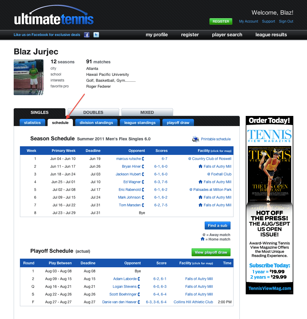 If you're new to Ultimate Tennis the screen shots below will show you how to navigate the site to get the most out of your league experience.